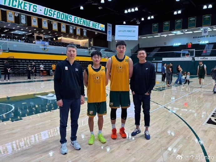 10月12日讯 中国男篮助教、NBA老鹰队下属发展联盟球队(科利奇帕克天鹰)助教李昂更新社媒,晒出与郭士强、杨瀚森、王俊杰、赵维伦等人的合照。