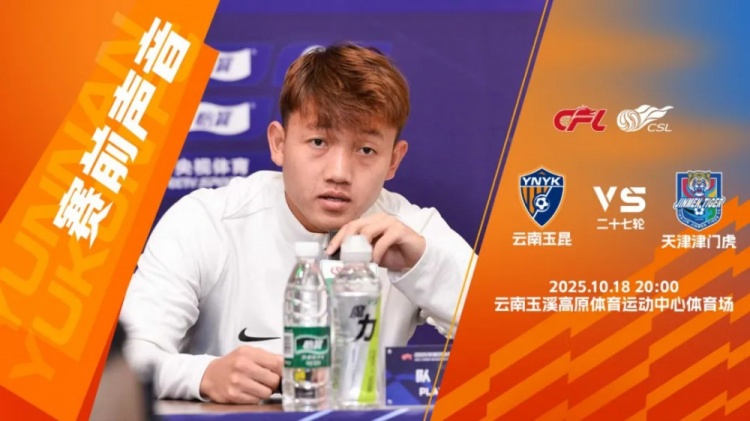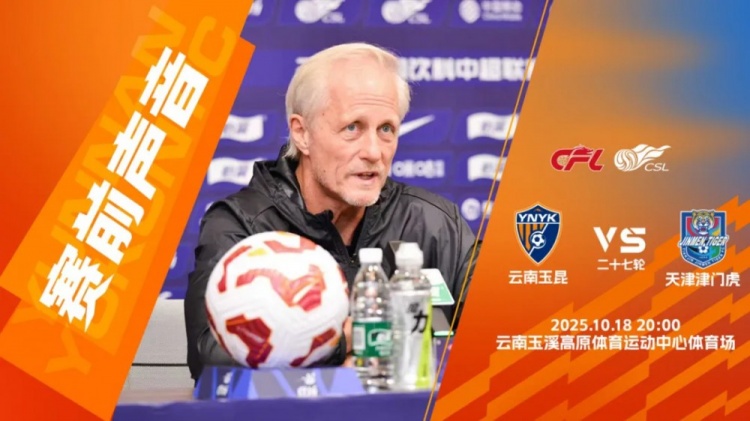 北京时间2025年10月18日20点00分,云南玉溪高原体育运动中心体育场,云南玉昆将与天津津门虎进行中超联赛第二十七轮比赛。