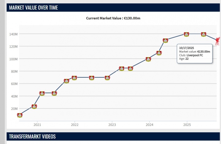 10月17日讯 德国转会市场更新英超联赛球员身价,利物浦新援维尔茨身价下跌1000万,跌至1.3亿欧元!