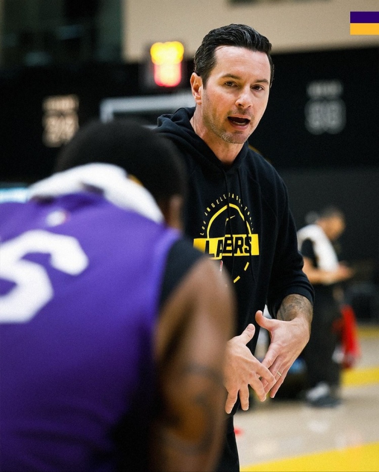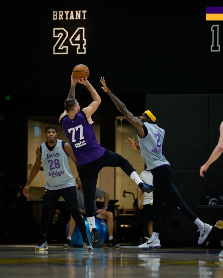 湖人官方晒训练照:东契奇后仰跳投 雷迪克指挥 詹姆斯不在列