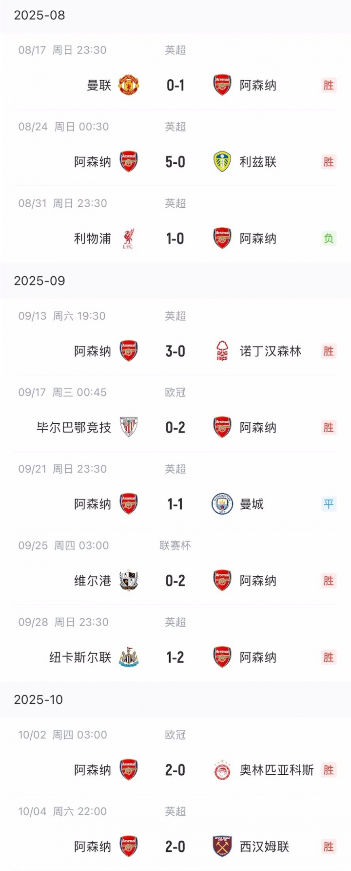 10月04日讯 英超第7轮,阿森纳主场2-0击败西汉姆联,枪手又收获了一场零封。